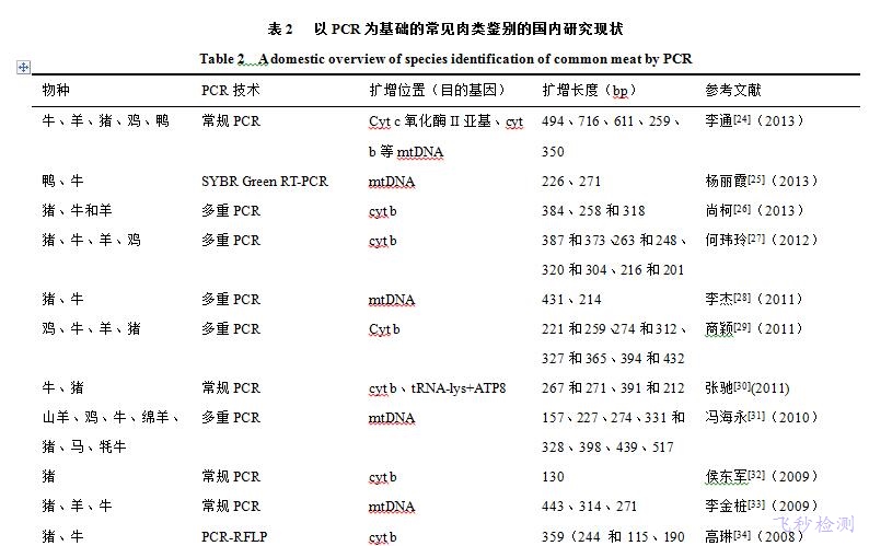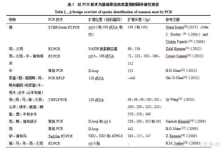 表1 以PCR技術(shù)為基礎(chǔ)常見肉類鑒別的國外研究現(xiàn)狀