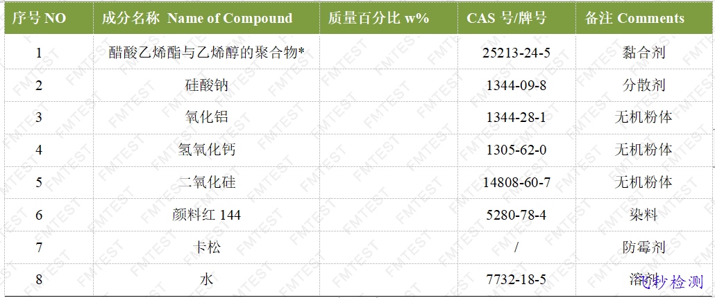 飛秒檢測通過儀器測試,檢測出玻璃潤滑劑配方如下圖所示: