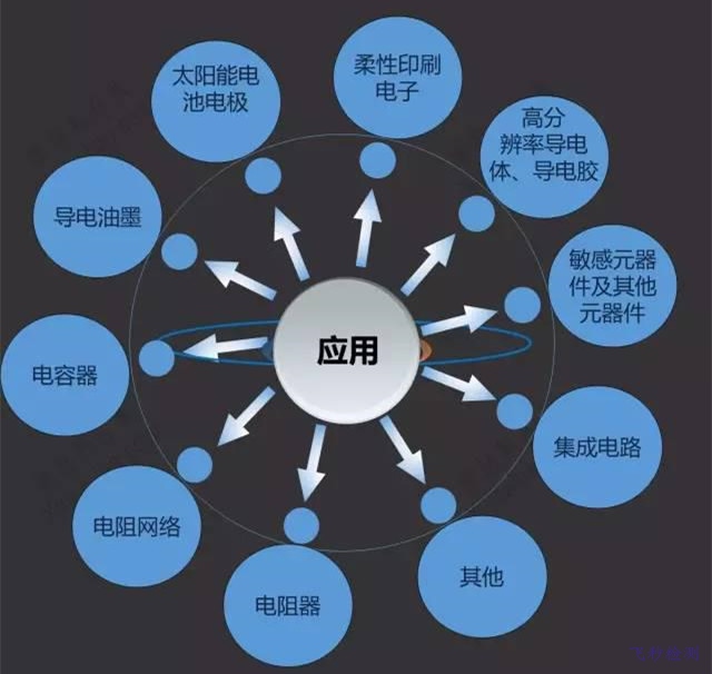 電子漿料是制造厚膜元件的基礎材料,由固體粉末和有機溶劑進過三輥軋制混合均勻的膏狀物,類似牙膏、油漆的狀態。集冶金、化工、電子技術于一體,主要用途如上圖。