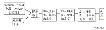 120 ~ 200 ㎡ /g 的氣相法白炭黑在攪拌條件下,緩慢加入60 ~ 100 重量份粘度為 2000 ~ 10000mPa · S 的端羥基二甲基硅氧烷中,以 60 ~ 70 轉 / 分種的攪拌速度,攪拌 3 ~ 4 小時。 靜置 8 ~ 9 小時備用。