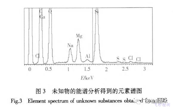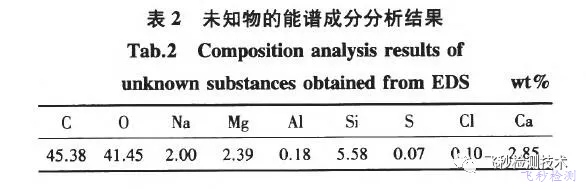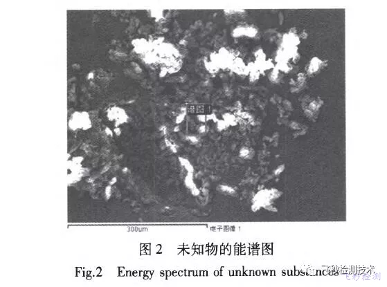 采用了Oxford IE350能譜儀對未知物的不同區域進行能譜分析,加速電壓為20 kV。