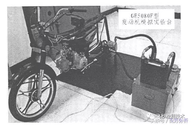 發(fā)動機修復(fù)劑修復(fù)效果需要專業(yè)實驗臺架。臺架由四沖程摩托車改裝而成,其發(fā)動機型號為GE5080F型。模擬實驗臺架的原理示意圖和實物圖分別如圖2及圖3所示。模擬臺架的基本性能參數(shù)參考相關(guān)文獻。該臺架采用液壓回路加載以實現(xiàn)對發(fā)動機的負載控制。