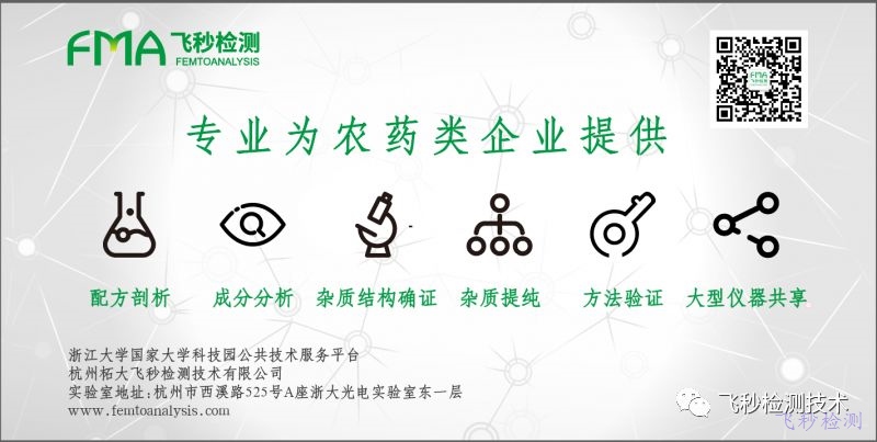 飛秒檢測專業為農藥企業提供一站式檢測、研發服務,包括配方剖析、成分分析、雜質結構確證、雜質提純、方法驗證、分析檢測儀器共享服務。截止2018年5月,飛秒檢測已經為數百家農藥企業提供相關服務,經驗豐富、服務周到、時間快捷。