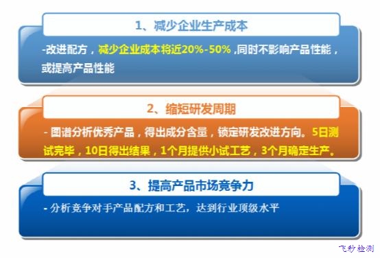3.縮短周期:通過成分還原樣品主要配方成分,明確配方中重要成分,減少實驗次數,達到加速研究周期,減少開發成本的目的。